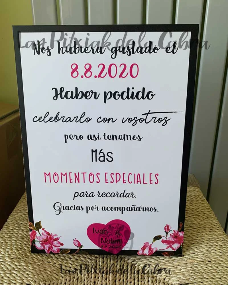 Como en este Cartel Cambio Fecha Boda podemos plasmar cualquier frase, cualquier idea, o dibujo.