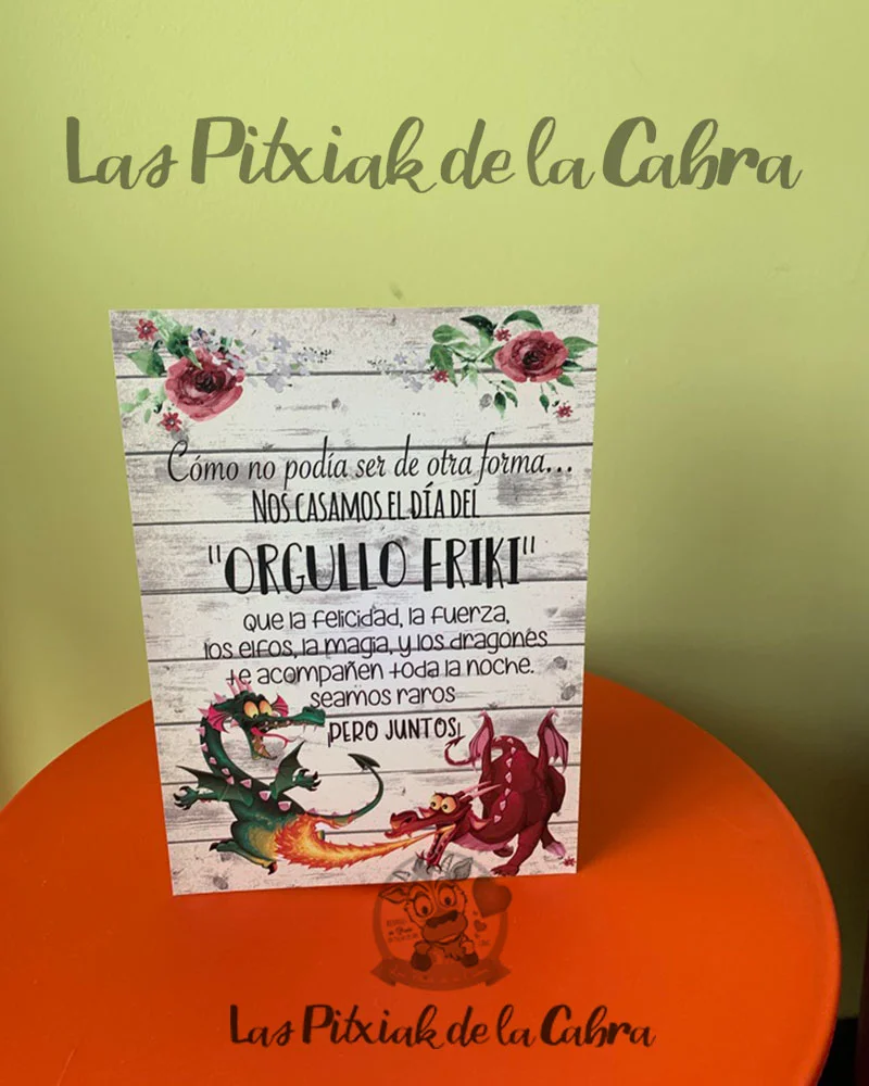 Como en este Cartel Orgullo Friki podemos plasmar cualquier frase, cualquier idea, o dibujo como en este caso los dragones que nos pidieron.