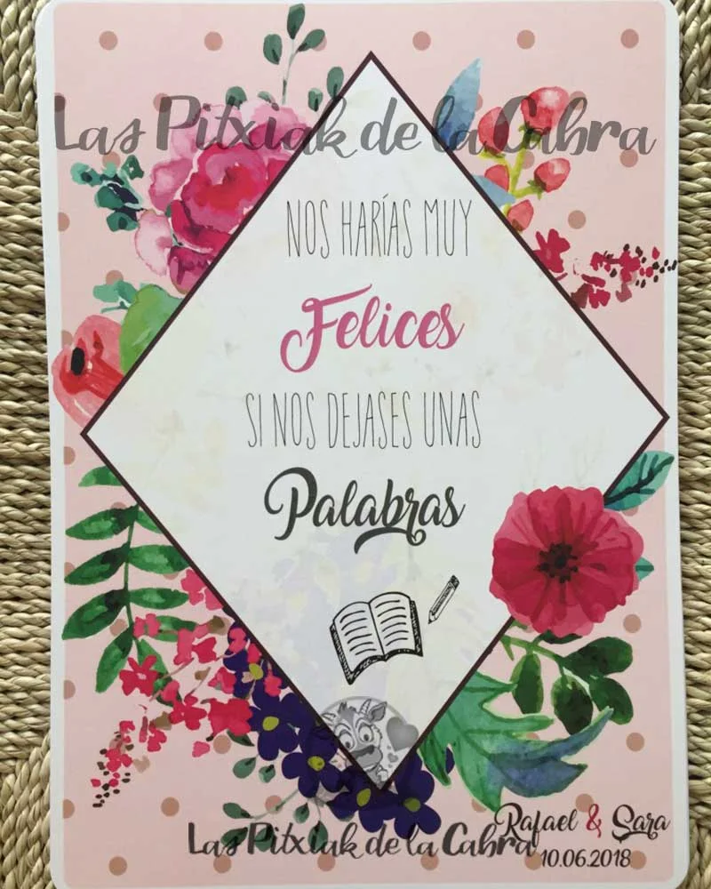 También podemos hacer el resto de los artículos que queráis a juego. Nosotros no cobramos los diseños y no tenemos pedido mínimo. También tenemos libros de firmas preciosos puedes pedir el tuyo en https://laspitxiakdelacabra.com/categoria-producto/libros-de-firmas/