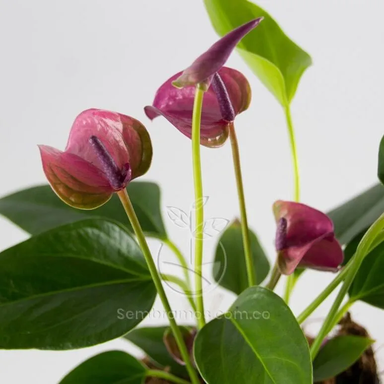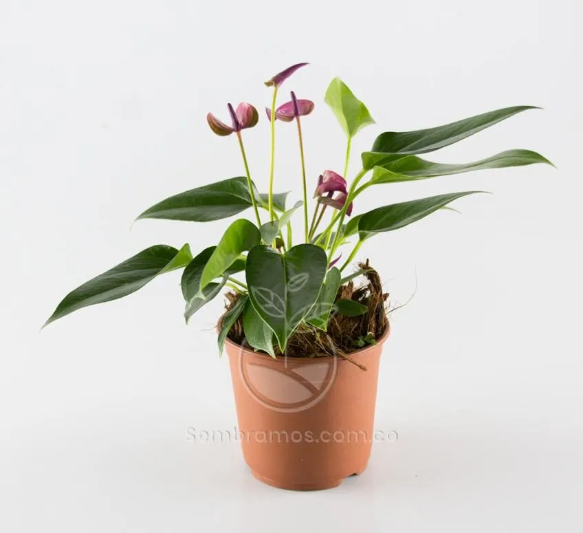 La Planta Anturio Morado se adapta perfectamente a ambientes resguardados de la luz solar directa. Opta por una maceta de tamaño medio que ofrezca un adecuado sistema de drenaje. Esta planta es ideal para espacios con alta humedad, iluminación tenue pero constante, ventilación adecuada y protección contra las corrientes de aire. Puedes ubicarla con elegancia en salas, salones, baños, patios o jardines cubiertos, donde sus hermosas flores realzarán la decoración y añadirán un toque de distinción y buen gusto a tus espacios.