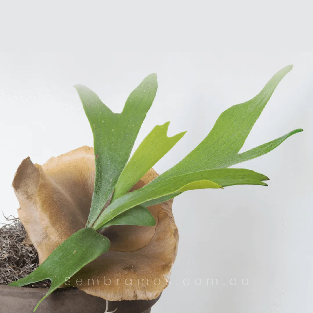 Suelo:Necesita un sustrato bien drenado y rico en materia orgánica. El Sustrato para plantas epífitas de Sembramos es ideal para esta planta. Este sustrato está compuesto por corteza de pino, carbón vegetal y fibra de coco, lo que proporciona un excelente drenaje, aireación y retención de humedad, además de aportar los nutrientes necesarios para el crecimiento saludable del cuerno de alce.